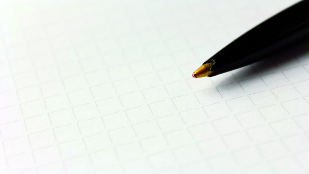 Caneta sobre papel quadriculado, simbolizando precisão e análise na R&F Investment Consulting